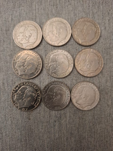 Ruotsin 1 kruunun kolikot