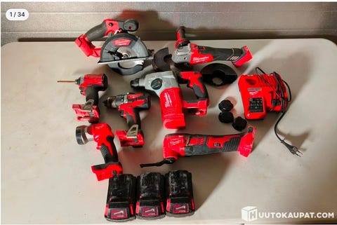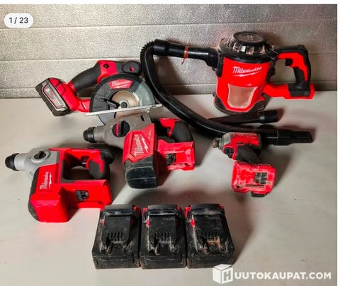 300 €Milwaukee akkutyökaluerä – useita koneita ja akkujaSalo, Inkere, Varsinais-Suomi4 pvAA RealisointiLisää suosikiksi.