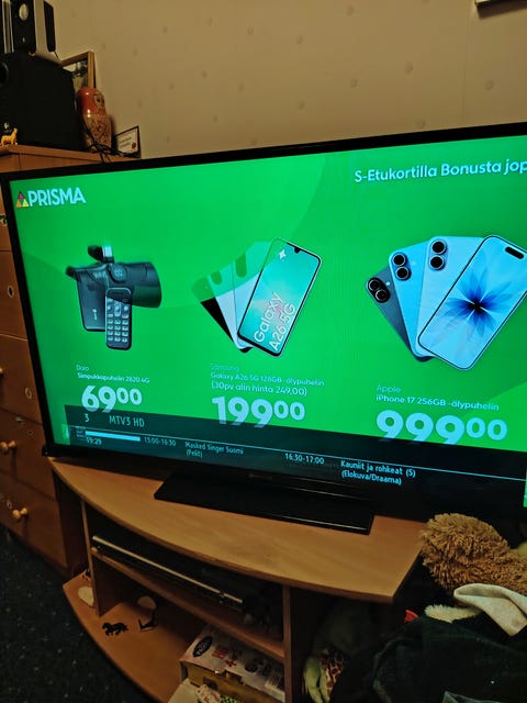 30 €Lg tv full HD.Seinätelineellä LGNaantali, Taimo-Nuhjala-Lietsala, Varsinais-Suomi13.10.Lisää suosikiksi.