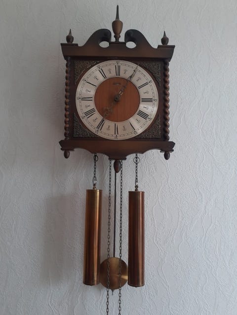 50 €Clover 31 day puukehykselinen seinäkello heilurill, lyö tasatuntia.Salo, Ylönkylä, Varsinais-Suomi10.2.Lisää suosikiksi.