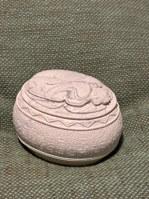 30 €Kaunis egyptiläinen rasia. Kanteen kuvattu skarabee-kuoriainen.Turku, Martti-Korppolaismäki, Varsinais-Suomi19.11.Lisää suosikiksi.
