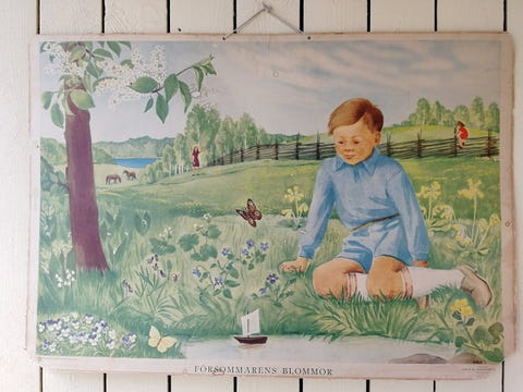58 €Kesäinen niitty ja poika opetustaulu, Försommarens blommorPöytyä, Kyrö, Varsinais-Suomi12.2.Kansakoulun aarteetLisää suosikiksi.