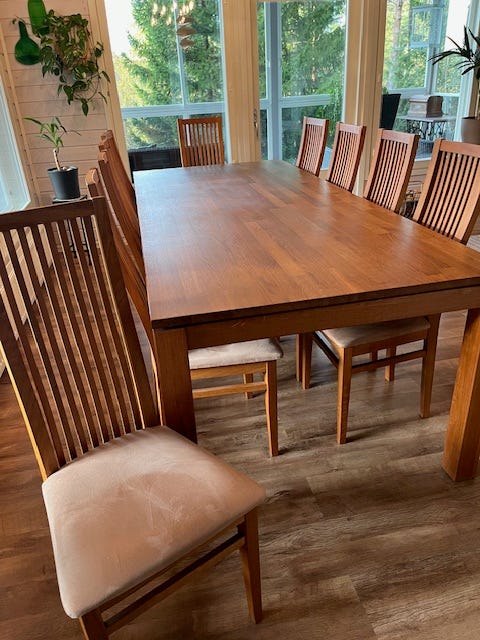 300 €Pohjanmaan kalusteen. Pohjalaissarja pöytä ja 6 tuoliaMasku, Askainen Keskus, Varsinais-Suomi9.10.Lisää suosikiksi.