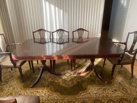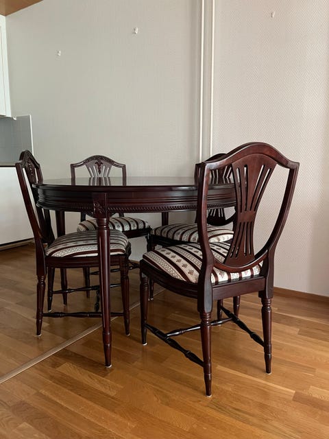 1 500 €Hepplewhite ruokapöytä ja kahdeksan tuoliaTurku, Kuninkoja-Mälikkälä, Varsinais-Suomi3.10.Lisää suosikiksi.