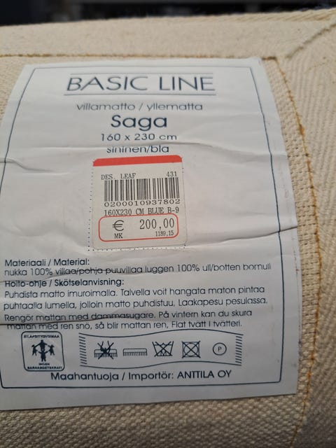 45 €Saga merkkinen sininen nukkavillamatto 160 x 230 cmTurku, Räntämäki-Saramäki, Varsinais-Suomi31.1.Lisää suosikiksi.