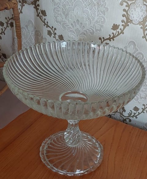 20 €Vintage-henkinen puristelasinen jalallinen tarjoiluvati spiraalikuviollaPaimio, Paimio Keskus, Varsinais-Suomi19 tLisää suosikiksi.
