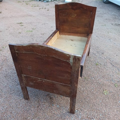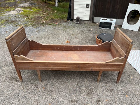 Vanha puinen sänky.