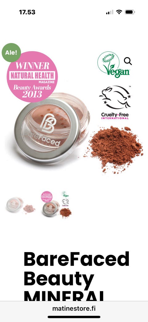 15 €Barefaced beauty mineraalimeikkiKaarina, Littoinen, Varsinais-Suomi19.11.Osta hetiLiikkeessä oleva kuorma-autoToriDiiliLisää suosikiksi.