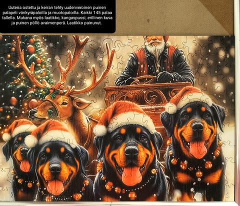 10 €Joulupukki ja Rottweilerit puupalapeliSalo, Halikko Keskus, Varsinais-Suomi15.11.Lisää suosikiksi.