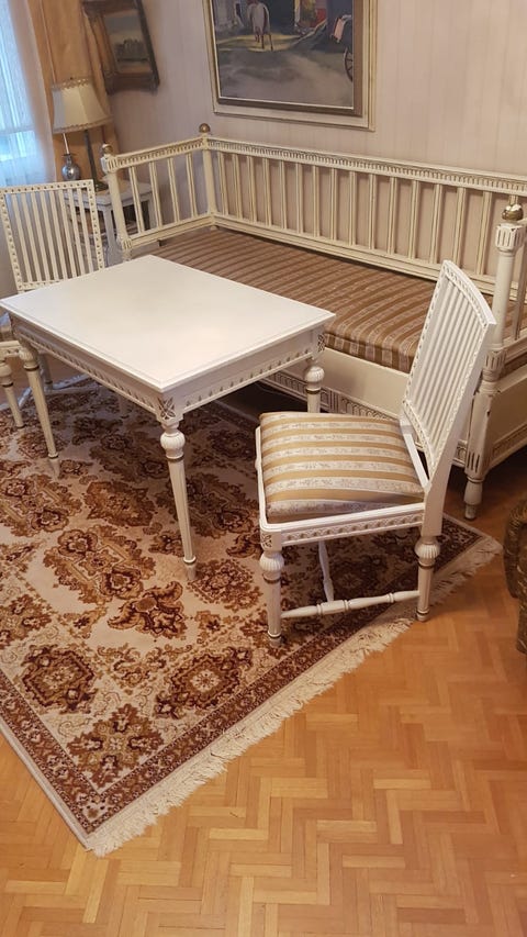 150 €Kustavilaistyylinen pöytä, tuolit ja vuodesohvaTurku, Turku Keskus, Varsinais-Suomi41 minLisää suosikiksi.