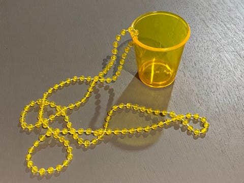Keltainen kaulakoru-shottilasi