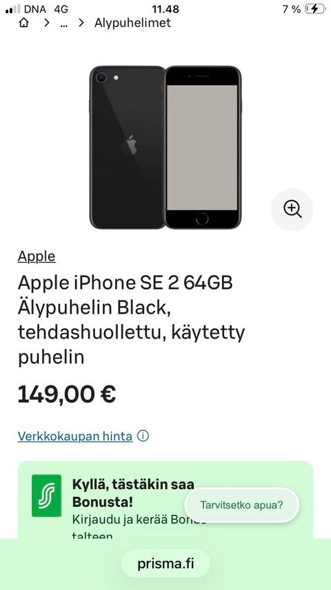 110 €Apple iPhone SE (2-3 gen) älypuhelin 64 GB musta 64 GB AppleForssa, Viksberg, Kanta-Häme13 tLisää suosikiksi.