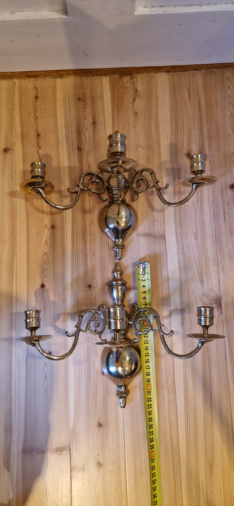 40 €Kaksi kpl 2-haaraista seinäkynttelikköä. Korkeus n. 32 cm.Hämeenlinna, Hätilä, Kanta-Häme12.10.Lisää suosikiksi.