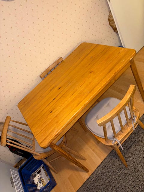 290 €Pöytäryhmä, 4 tuolia ja pöytä yhteishinnaltaan 290eHämeenlinna, Alvettula, Kanta-Häme19 tKartanon HelmiLisää suosikiksi.