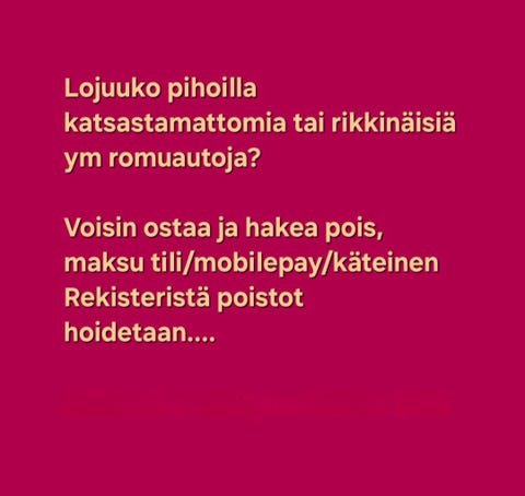 25 €Finel wihtoriVantaa, Nikinmäki, Uusimaa1 minOsta hetiLiikkeessä oleva kuorma-autoToriDiiliLisää suosikiksi.