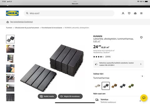 30 €RUNNEN Lattiaritilä, ulkokäyttöön, tummanharmaa 20kpl muoviEspoo, Kilo, Uusimaa1 pvLisää suosikiksi.