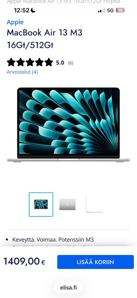 1 250 €Apple MacBook Air 15" M3 16Gt 256Gt, tähtiharmaa AppleJärvenpää, Loutti, Uusimaa1 pvOsta hetiLiikkeessä oleva kuorma-autoToriDiiliLisää suosikiksi.