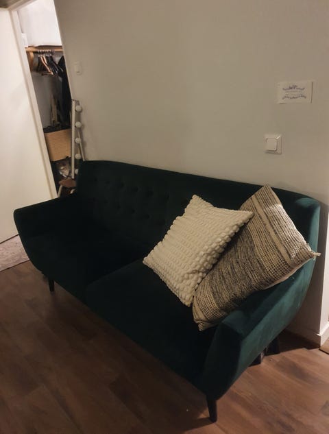 Sininen samettisohva