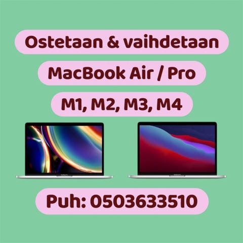 Aurinko ja vuoret1 000 €O: Macbook Air 24gb 1tb M-sirullaHelsinki, Sörnäinen, Uusimaa2.12.2025Lisää suosikiksi.