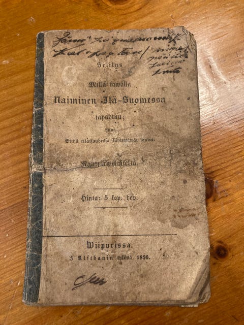 150 €Selitys millä tavalla naiminen Itä-Suomessa tapahtuu (v. 1856)Espoo, Espoonlahti, Uusimaa3.11.Lisää suosikiksi.