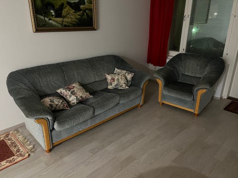 50 €Kermanvaalea kangassohvaryhmä, 3-istuttava sohva ja 2 nojatuoliaVihti, Nummela, Uusimaa3.3.Lisää suosikiksi.