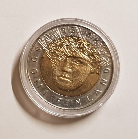 1 €Suomen markka 1990. Kapselissa. Halkaisija - 23 mm. Vantaa, Tikkurila, Uusimaa4.10.Lisää suosikiksi.