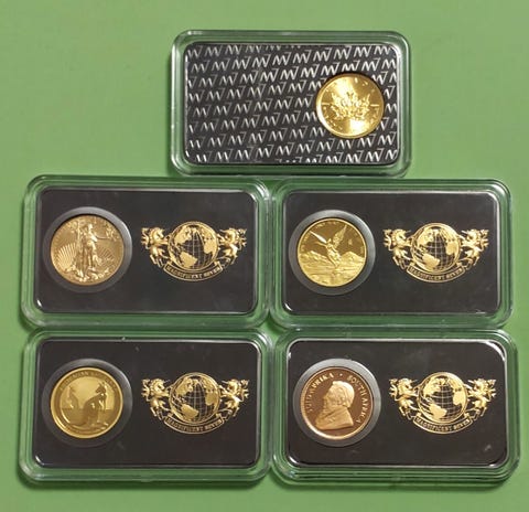 395 €5 x 1/10 oz kultaa: USA Eagle, Maple Leaf, Kangaroo, Krugerrand ja EnkeliHelsinki, Kaivopuisto - Ullanlinna, Uusimaa5.10.Lisää suosikiksi.