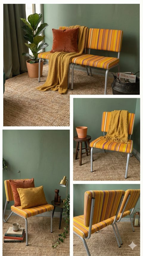 100 €Vintage Design Putkirunkotuolit – Retro Raitaverhoilu (Kelta/Oranssi)Espoo, Niittykumpu, Uusimaa24.2.Lisää suosikiksi.