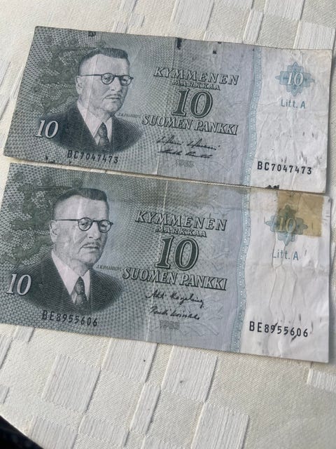 40 €Suomen Pankki 10 Markkaa Seteli Lit. A 1963 2kpl.Porvoo, Porvoo Keskus, Uusimaa4 pvLisää suosikiksi.