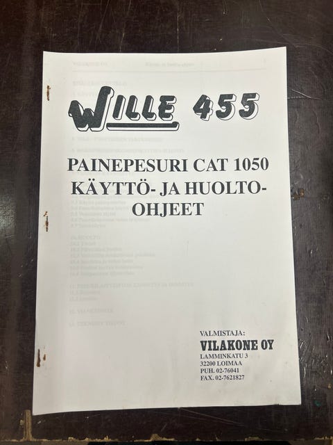 20 €Wille 455 painepesuri CAT 1050 käyttö- ja huolto-ohjeetNurmijärvi, Klaukkala, Uusimaa22 tLisää suosikiksi.