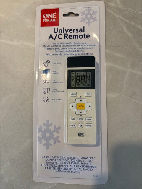15 €Ilmalämpöpumpun yleiskaukosäädin (Käyttämätön) - One for All URC1035Espoo, Uusmäki, Uusimaa18 tLisää suosikiksi.
