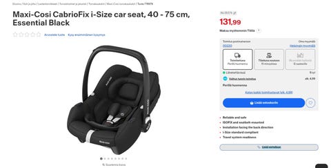 80 €Maxi-Cosi CabrioFix turvakaukalo vastasyntyneelle Maxi-CosiHelsinki, Etelä-Vuosaari, Uusimaa3 tLisää suosikiksi.