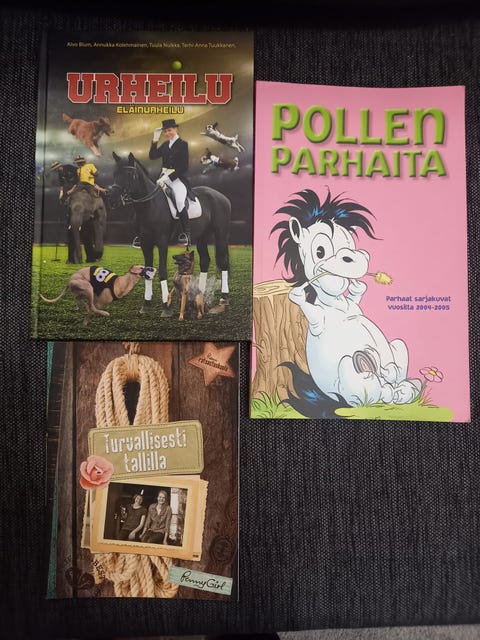 6 €Eläinurheilu kirja,turvallisesti tallilla ja pollen parhaita.Helsinki, Malmi, Uusimaa7 tLisää suosikiksi.