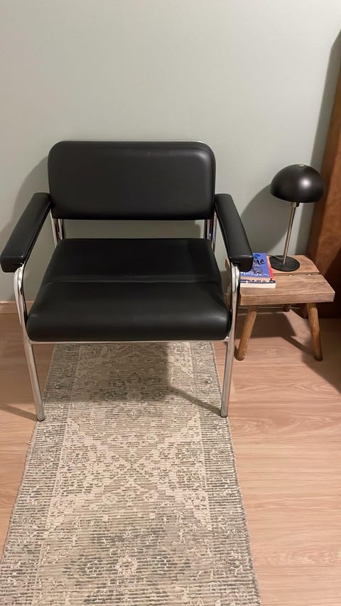 Varattu. Musta nahkasohva