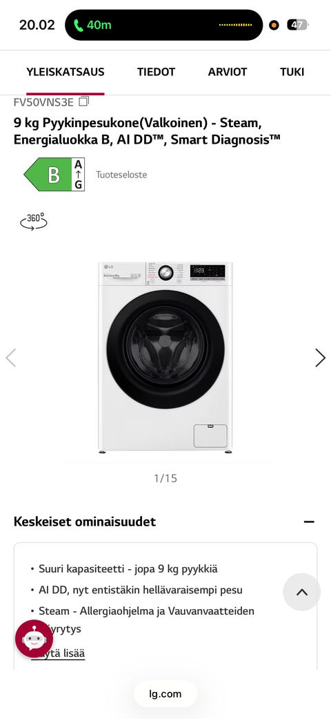 95 €LG 2in1 edestä täytettävä pesukone-kuivauskone valkoinen LGHelsinki, Etelä-Haaga, Uusimaa9 tLisää suosikiksi.