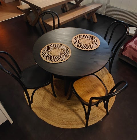 Pöytä ja kolme tuolia