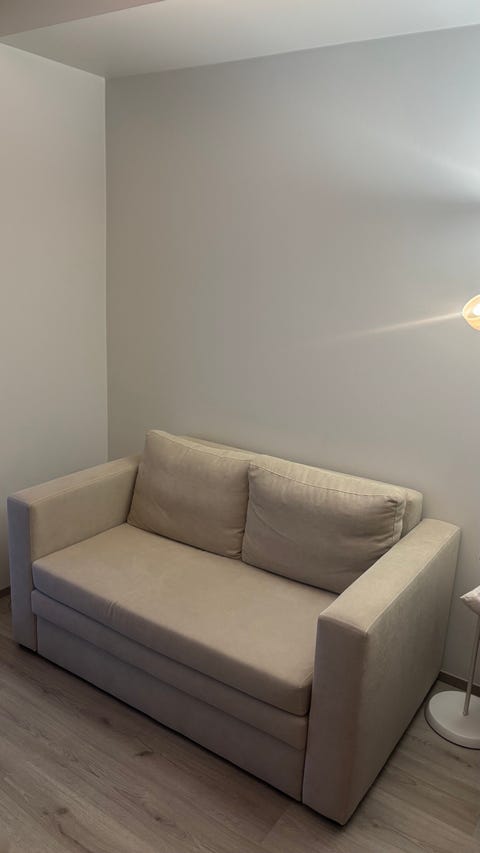 Hakusessa vaalea vuodesohva