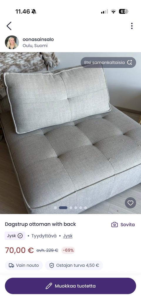 400 €Kukkapuron sohva ja nojatuoli rungot sekä pöydät 2kplOulu, Oulu Keskus, Pohjois-Pohjanmaa20 tHuonekalumesta Lisää suosikiksi.