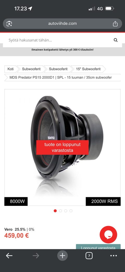 750 €MDS Predator PS15 2000D1 15 tuuman 35cm subwooferRaahe, Isoholmi-Antinkangas, Pohjois-Pohjanmaa3 pvLisää suosikiksi.