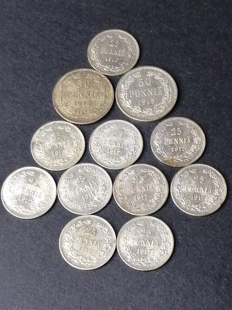 25 €Suomi 25 / 50 Penniä Hopearaha 1910-1920 -lukuYlivieska, Ylivieska Keskus, Pohjois-Pohjanmaa23.10.Lisää suosikiksi.