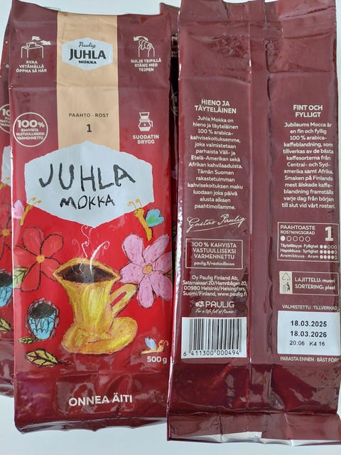 MyydäänAskartele Juhla Mokan äitienpäivä kahvipusseistaIsokyrö, Tervajoki, Etelä-Pohjanmaa8.2.Lisää suosikiksi.