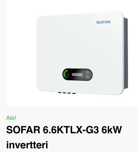 250 €SOFAR 6.6KTLX-G3 6kW Invertteri valkoinenKurikka, Jurva Keskus, Etelä-Pohjanmaa1 pvLisää suosikiksi.