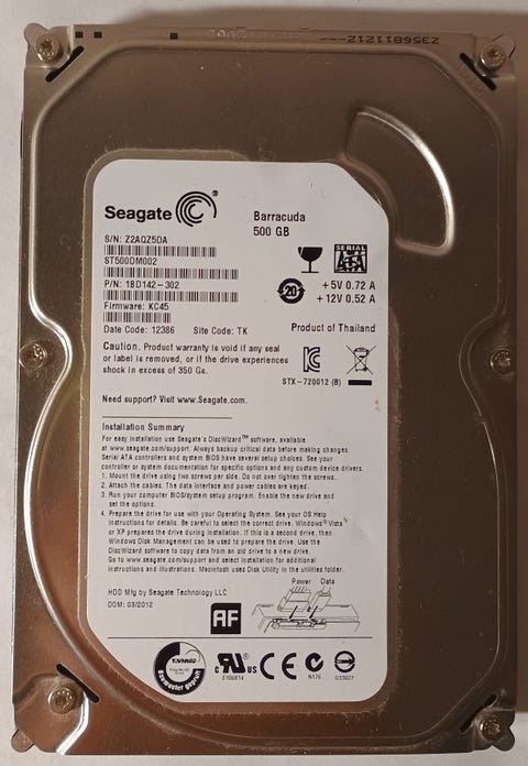 10 €500Gb 7200rpm 3½" Seagate BarracudaJyväskylä, Keljo-Ristonmaa, Keski-Suomi19.12.Lisää suosikiksi.