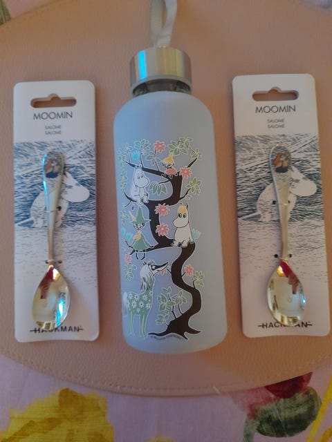 10 €Moomin Characters lasinen juomapullo ja salome lusikka HackmanJyväskylä, Kuokkala-Ristikivi, Keski-Suomi3 tLisää suosikiksi.