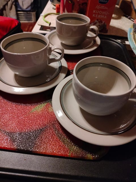 7 €Arabia kultareunainen kahvikuppi ja asetti x 1Liperi, Ylämylly, Pohjois-Karjala27.2.Lisää suosikiksi.