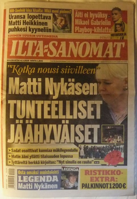 10 €Matti Nykäsen hautajaiset / Ilta-sanomatMänttä-Vilppula, Mänttä, Pirkanmaa15.10.Lisää suosikiksi.