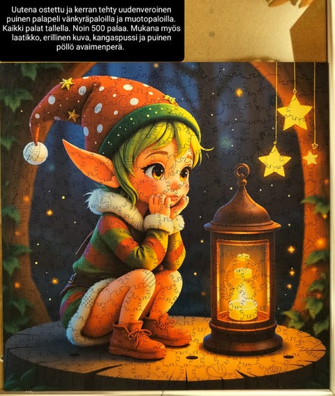 10 €Mietteliäs tonttu ja lyhty jouluinen puupalapeliSalo, Halikko Keskus, Varsinais-Suomi4 tLisää suosikiksi.