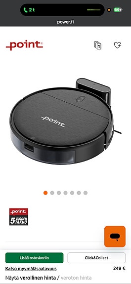 95 €Point robotti-imuri ja moppaaja musta 2000 Pa 2600 mAh PointEspoo, Viherlaakso, Uusimaa1.2.Lisää suosikiksi.