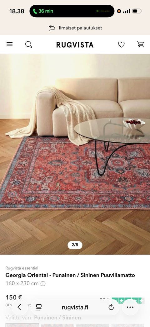 60 €Georgia Oriental - Punainen / Sininen Puuvillamatto 160 x 230 cm RugvistaHelsinki, Pihlajamäki, Uusimaa2 pvLisää suosikiksi.