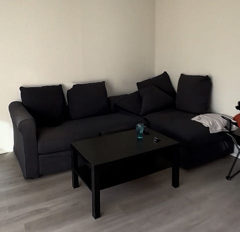 Musta avokulmasohva